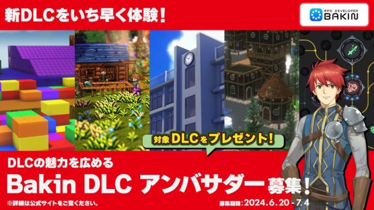『RPG Developer Bakin』やBakinのDLCを私たちと一緒に盛り上げてくださる方を募集し、一定期間、Bakin DLC アンバサダーに任命して、新作DLCのテストやプロモーションを行っていただくものです。