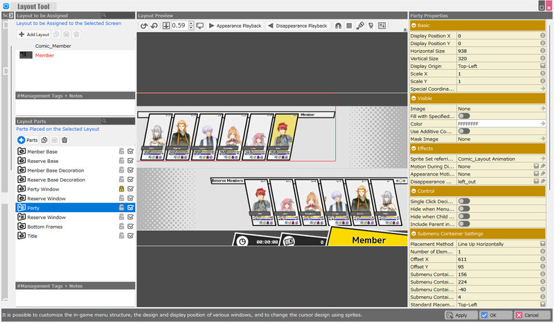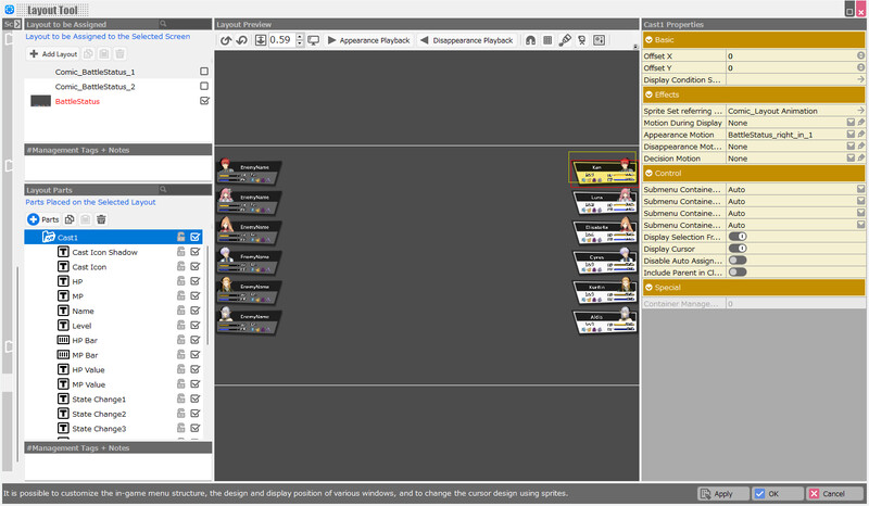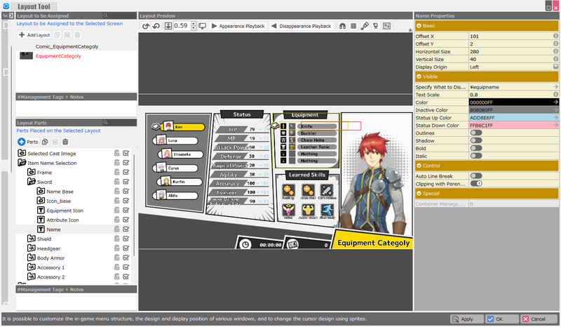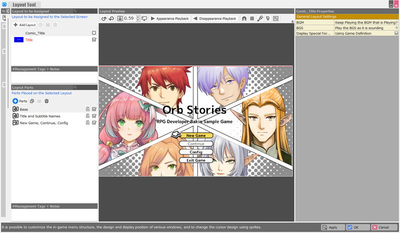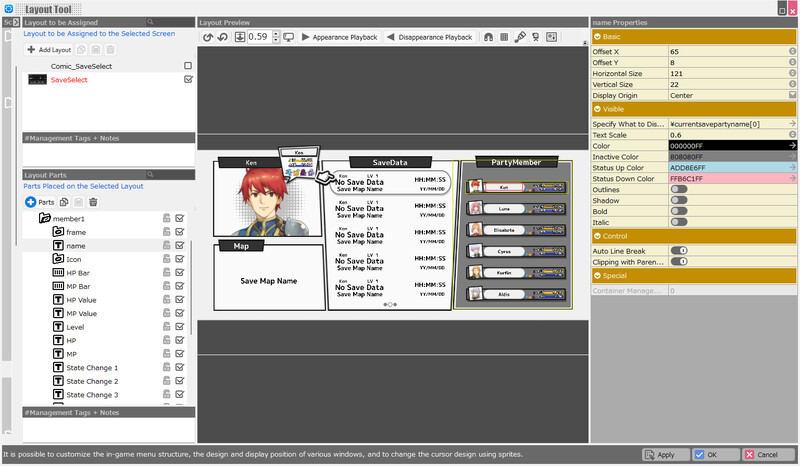 - タイトル、システム、ゲーム内演出、メニュー、会話、ショップ、バトルの各画面セットアップ済みデータ