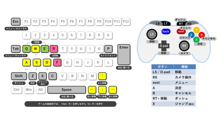 キーボードとコントローラーの操作方法