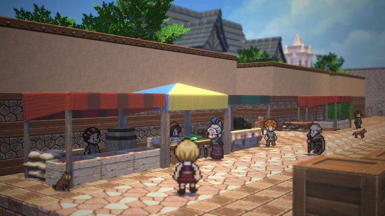 テーブルや木箱や樽、果物や野菜などと組み合わせ、さらに店員のイベントテンプレートなどを配置することで街を賑やかに彩れます。