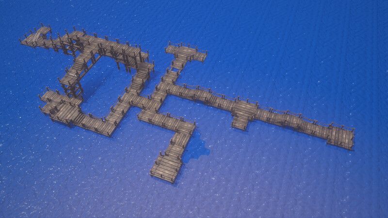 港の桟橋、河に掛かる橋、工事現場の足場…街や風景を彩るオブジェクトとしてはもちろん謎解きのギミックなどにも活用できる木製の足場のパックです。