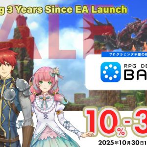 Categoriesお知らせ, 新発売 2025-10-172025-10-17 DLsiteにて『RPG Developer Bakin』販売開始 『RPG Developer Bakin』が、本日より 配信サイトDLsiteでもご購入いただけるようになりました。