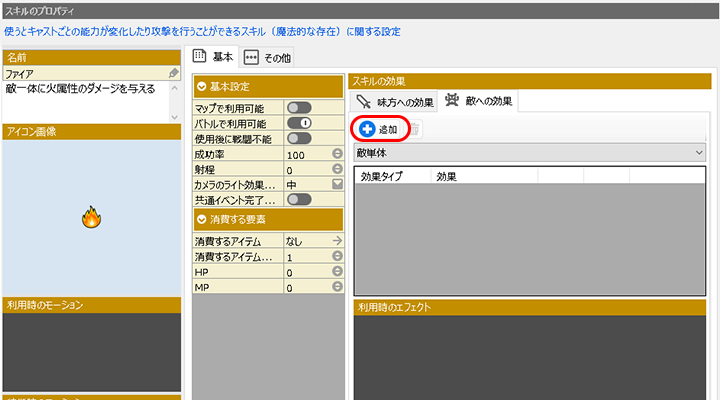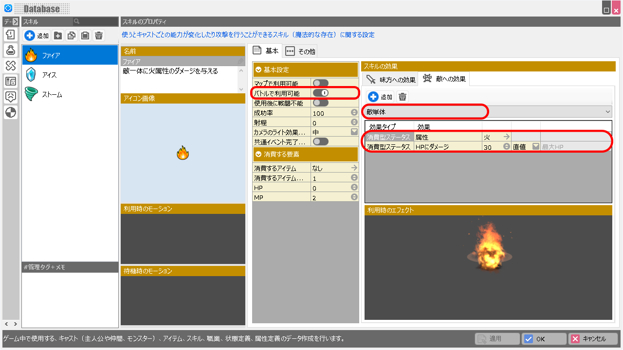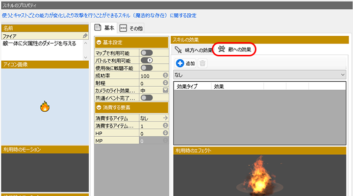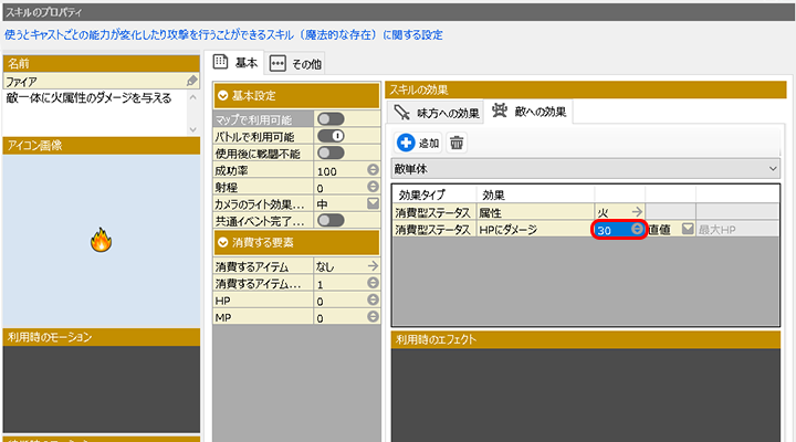 (例.3 攻撃する属性を設定・スキル
