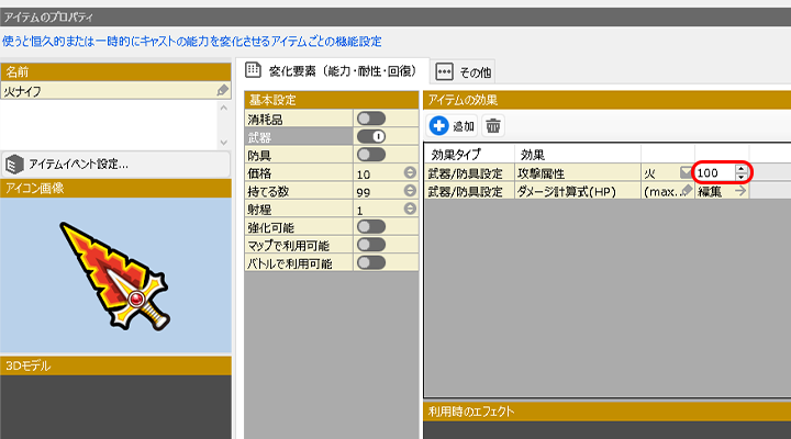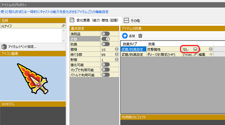 (例.2 攻撃する属性を設定・アイテム