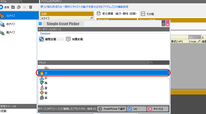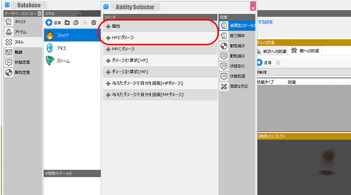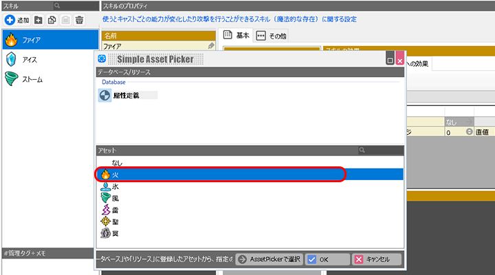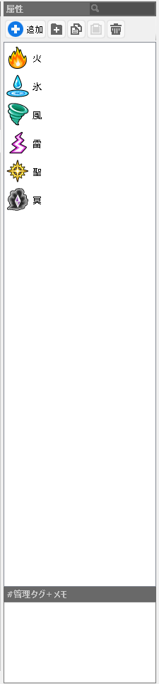 そのため装備武器アイテム、もしくはスキルに属性を設定します。