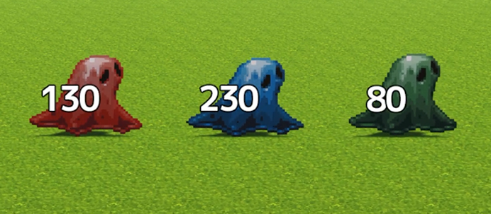 左から火属性、氷属性、風属性のキャストへ攻撃した場合のダメージです。