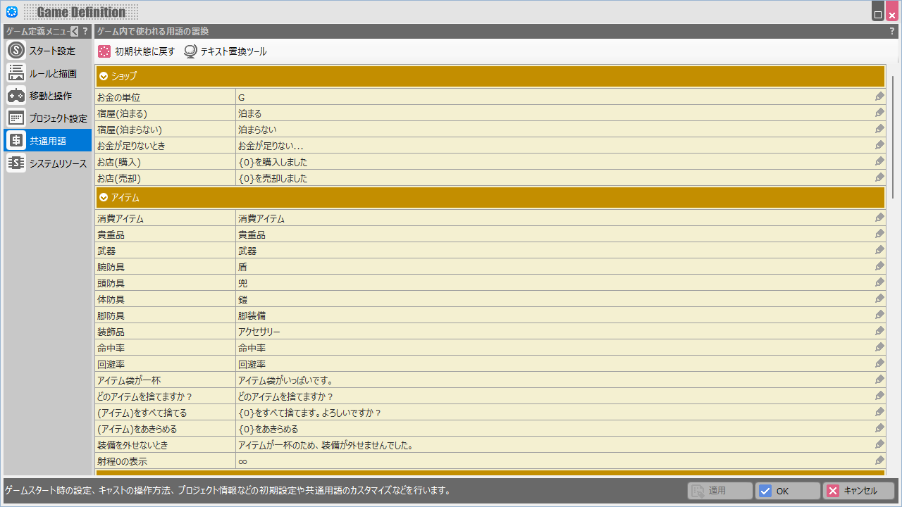 ゲーム内で使われる用語の置換†