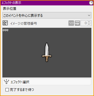 エフェクトの表示が終了するまで次のイベントパネルの実行を待ちます。