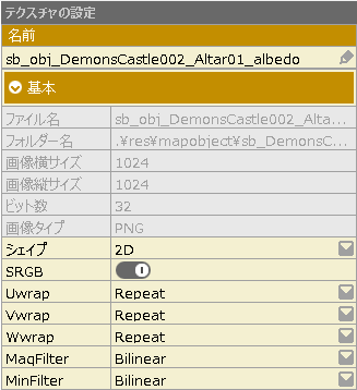 リソースメニューのテクスチャでは、テクスチャの詳細設定を行います。