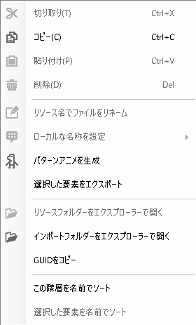 テクスチャ リスト / 右クリックメニュー