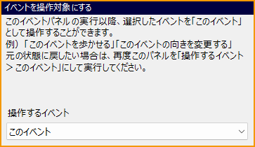 このイベントパネルの実行以降、指定したイベントを「このイベント」として操作することができます。