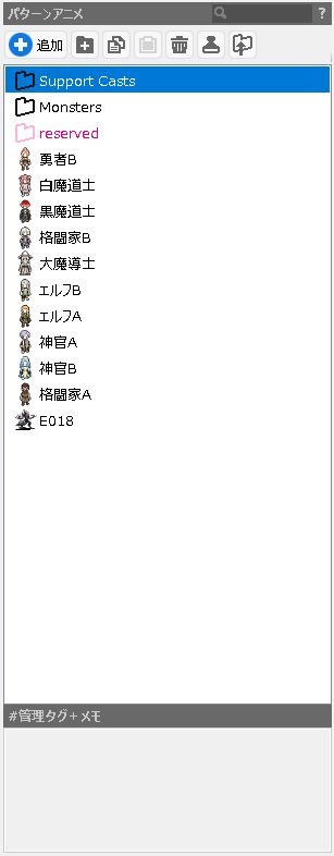 パターンアニメを管理するフォルダーを追加します。