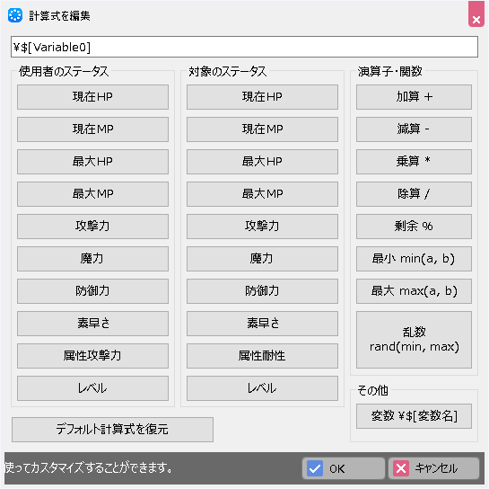 計算式の右にある「…」アイコンから、四則演算を使って、ダメージ計算式をカスタマイズすることができます。