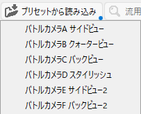 | バトルカメラA サイドビュー | サイドビューをベースとしたバトルカメラプリセットです。(デフォルト設定) |