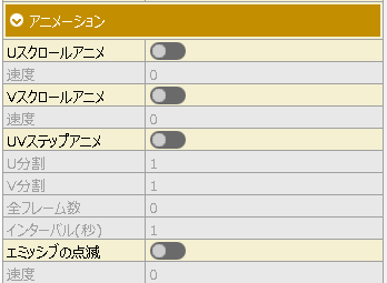 U軸のテクスチャアニメーションを設定します。