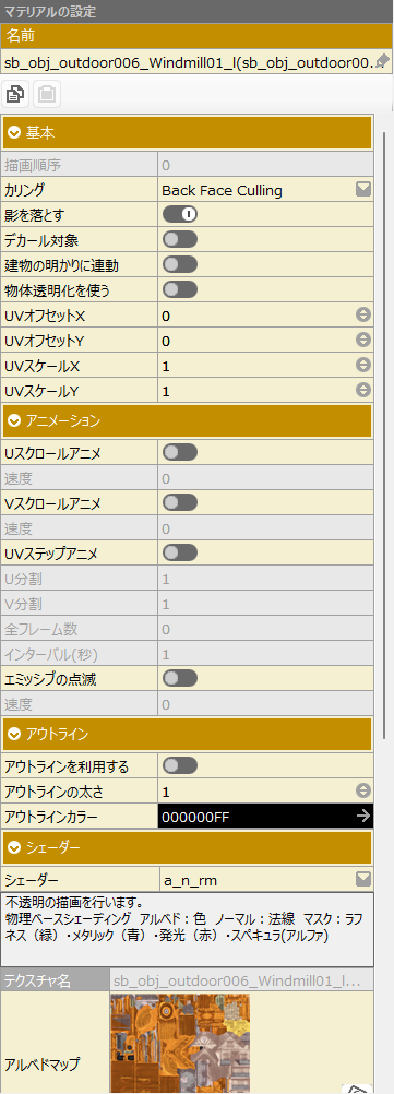 | a_n | 不透明の描画を行います。物理ベースシェーディング アルベド:色 ノーマル:法線 |