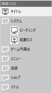 ここには、機能やシチュエーションごとに多くのゲーム画面があらかじめ用意されており、大きく7つのカテゴリに分類されて表示されます。