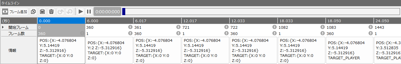 例えば「待機」カメラで60と入力すると、「開始」カメラ終了後、60フレームかけて「待機」カメラの最初のフレームへ遷移します。