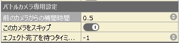 カメラ演出を加えたくないカメラ設定でONにすると、そのカメラ設定はスキップされます。