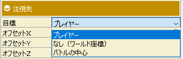 例えば、ポイントを「プレイヤー」に設定し、オフセットYを+1とすると、注視先の座標が+1増えることになります。