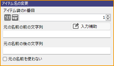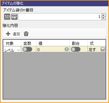 (!)このパネルを使って名称変更をするアイテムはデータベース>アイテムで「強化可能」をオンにしておく必要があります。