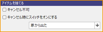 破棄するアイテム確認画面をキャンセルした際に、指定のイベントスイッチ(変数)をオンにします。