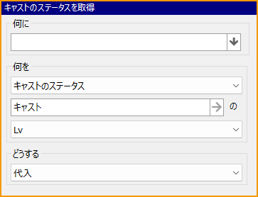 指定のキャストのステータスを取得し、変数に指定の方法で代入します。