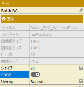 マップ上に置かれる(ライティングの影響を受ける)画像は「SRGB」をオンにします。
