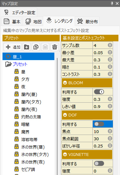 - このグラフィック指定をせずにサブグラフィックのローカルライト設定のみを加えたスタンプは、「ダンジョンRPGサンプル」のB1マップのラストボス戦でも使用しています。