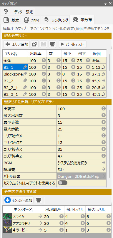 ここでは『ダンジョンRPGサンプル』のバトルシーンで使われるマップ(バトルマップ)の作り方を説明します。