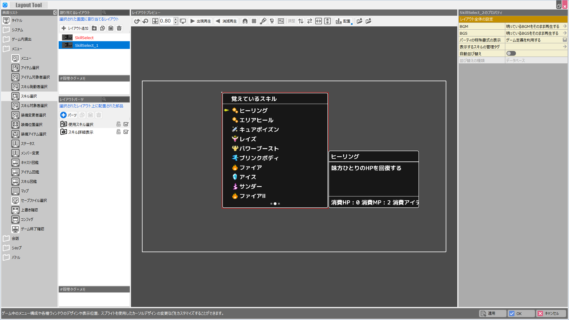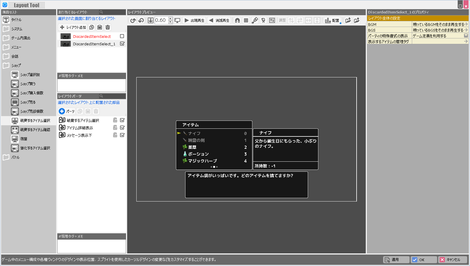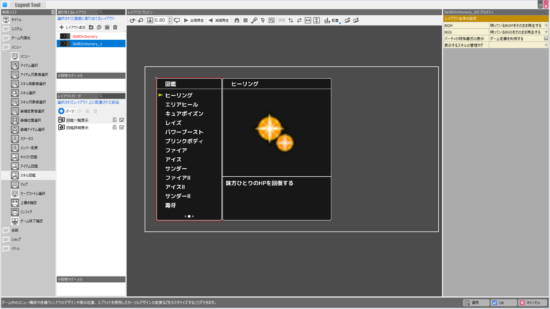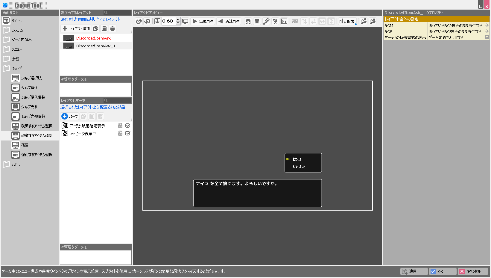 (解説)レイアウトツールでは各画面の持つ固有の役割は変更できません。