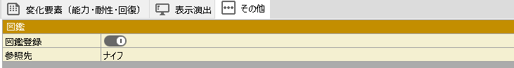 ここで指定したアイテムの各種データを図鑑に表示することができます。