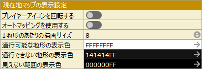 ミニマップ上で通行可能な地形をどの色で表示するかを設定します。