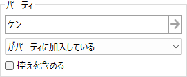 チェックするパーティメンバー名と、そのメンバーが加入か非加入かを選択します。