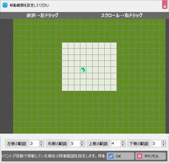 オンにすると、このイベントが移動できる範囲を決めることができます。