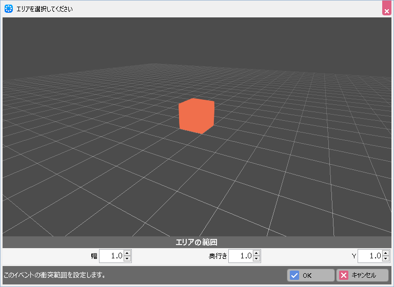 デフォルトの当たり判定の大きさは、キャストの場合が「幅×奥行き×高さ=1×1×1」。