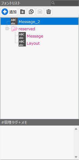 - フォントはゲーム実行時にリソース>フォントのサイズで指定した値でライスタライズされます。