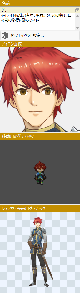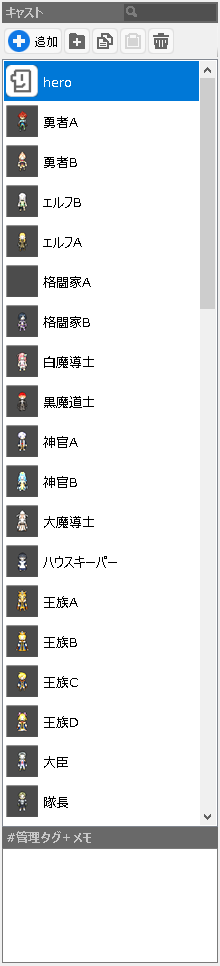 主人公を始め、パーティの同行メンバーとして使用するキャストです。