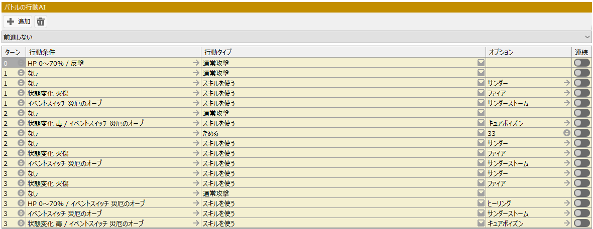 追加ボタンを押して"状態"を選択し、耐性の増減値を設定します。