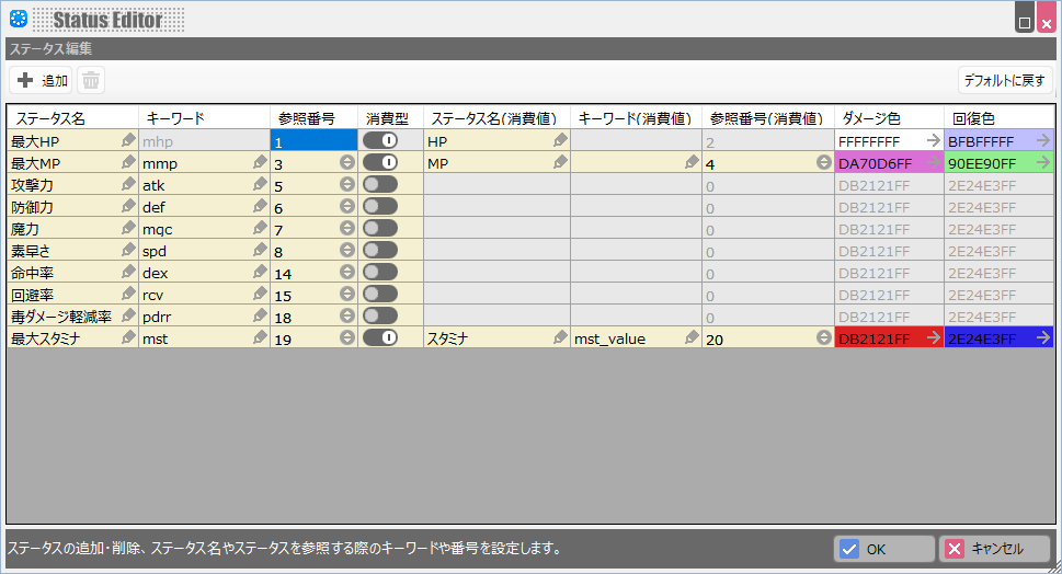 - デフォルトのステータス設定