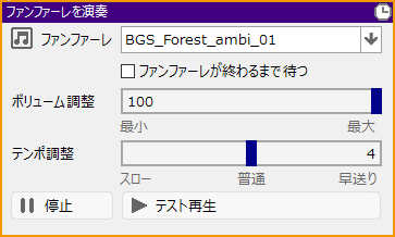設定したファンファーレをテスト再生/停止します。