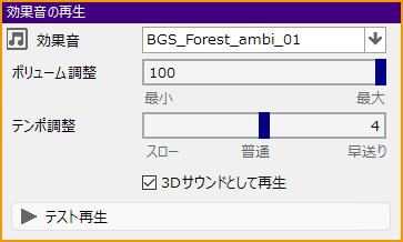 チェックするとプレイヤーから見た位置や向きなどに応じて、音の聞こえ方やボリュームが変化します。