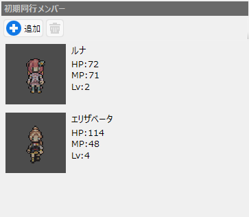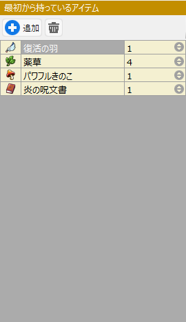 主人公がゲーム開始時から所持しているアイテムを設定します。