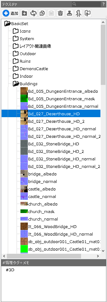 3Dモデルで使用するテクスチャを追加します。