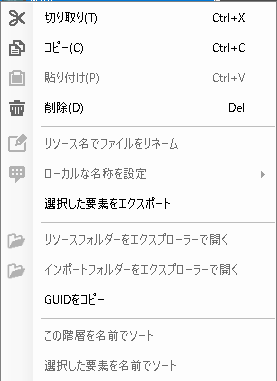 - リソースフォルダーのエクスプローラーで開く