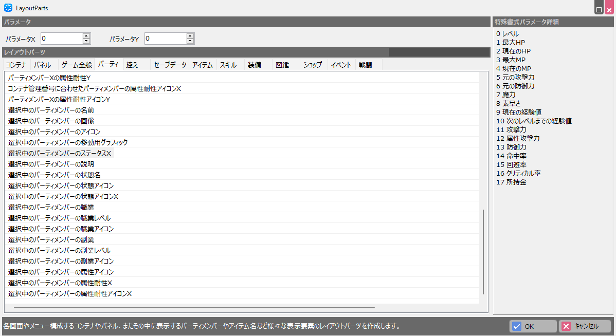 ※例えばパラメータでパーティメンバーを指定する特殊書式では、この欄は表示されません。