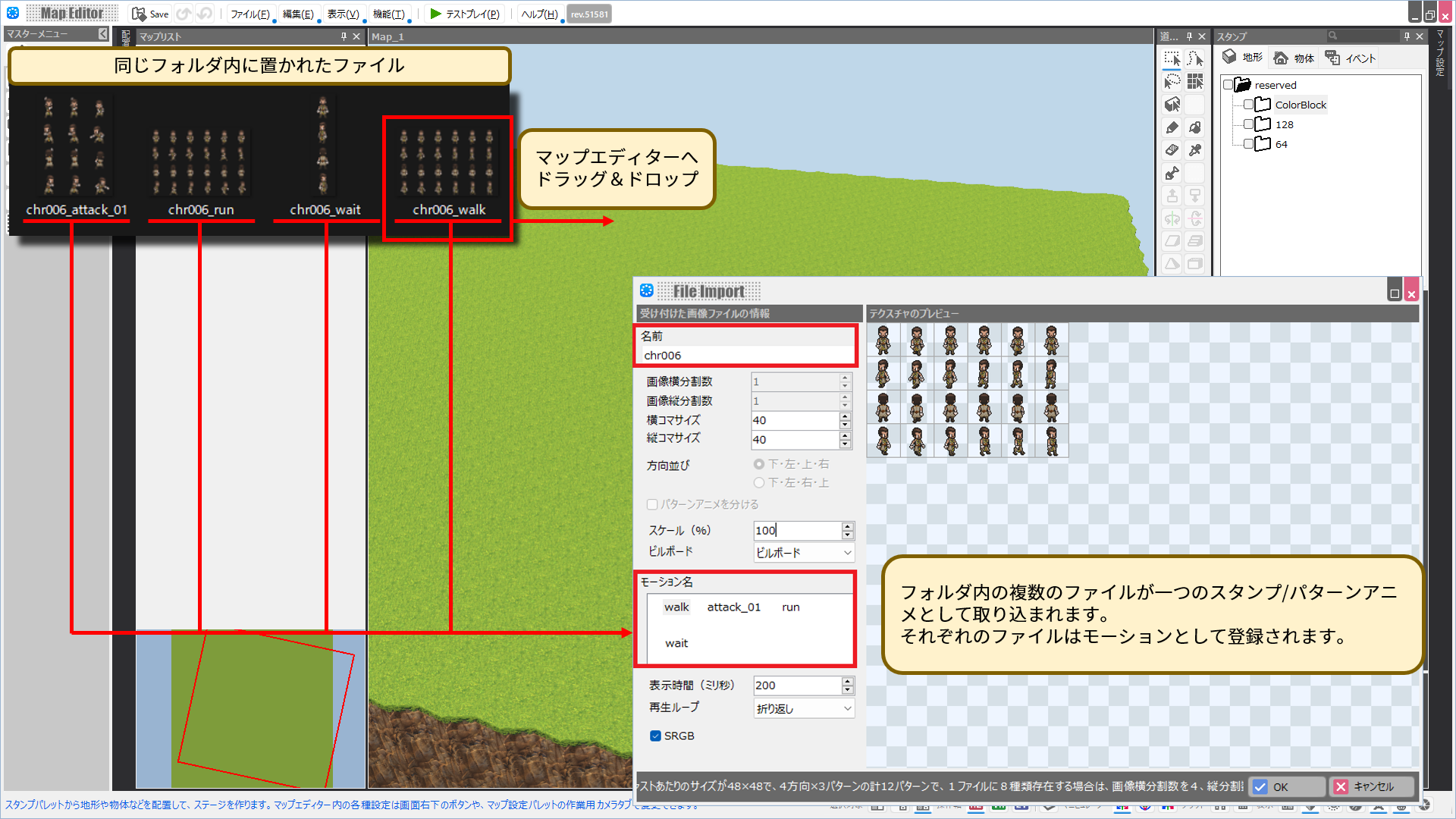 マップエディターに画像をドラッグ&ドロップすることで2Dスタンプが生成されます。
