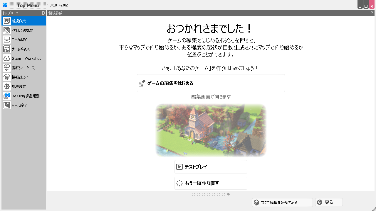 初めて本アプリを手にした方も、まったくのゲーム作成ビギナーの方も、まずはこの機能を使って、『RPG Developer Bakin』の世界を体感してみてください。