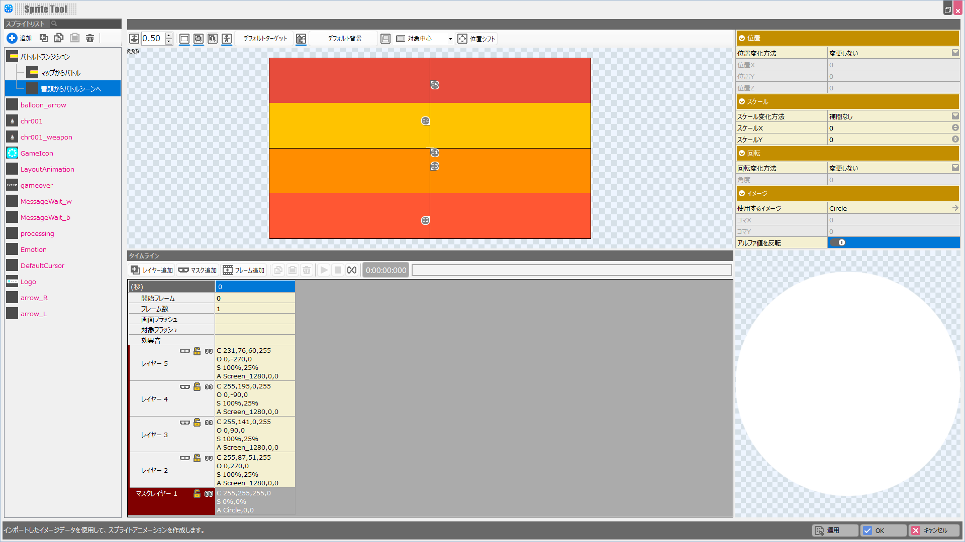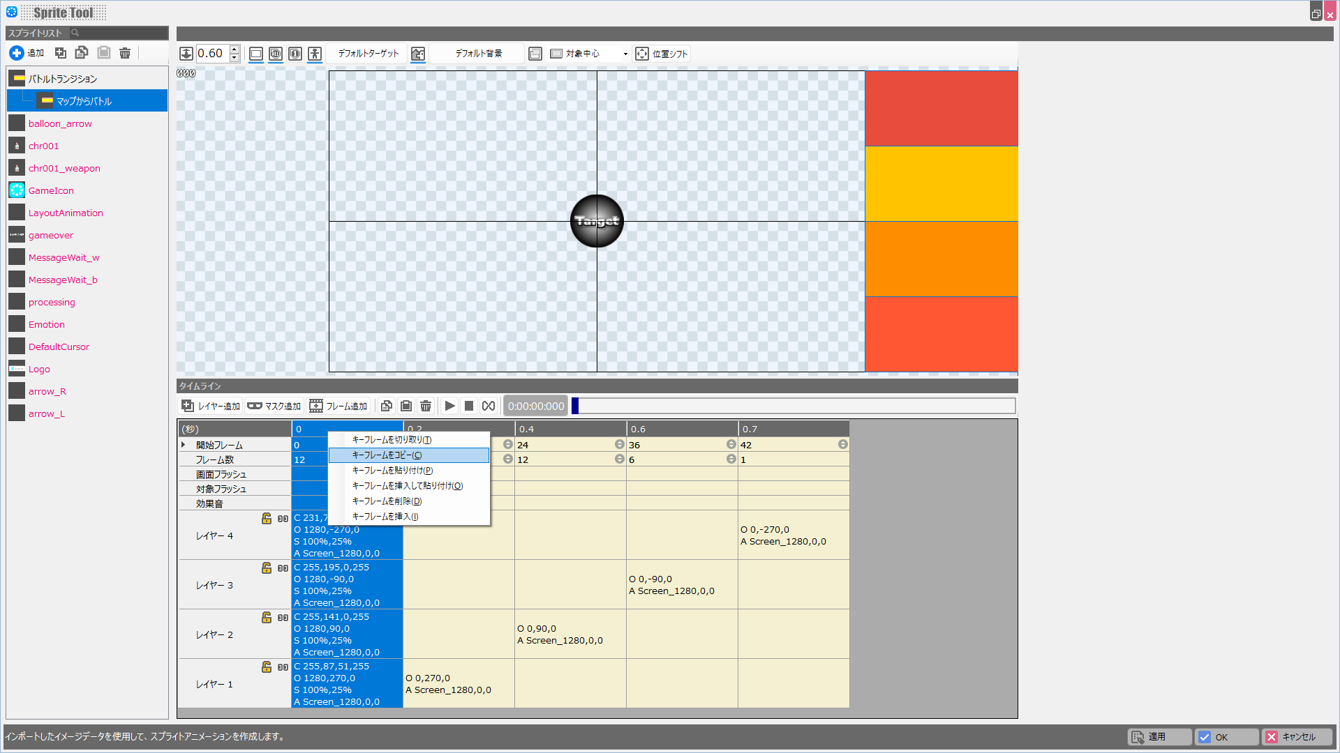 複数の画像を組み合わせてアニメーションさせる「スプライト」を作成することができるツールです。