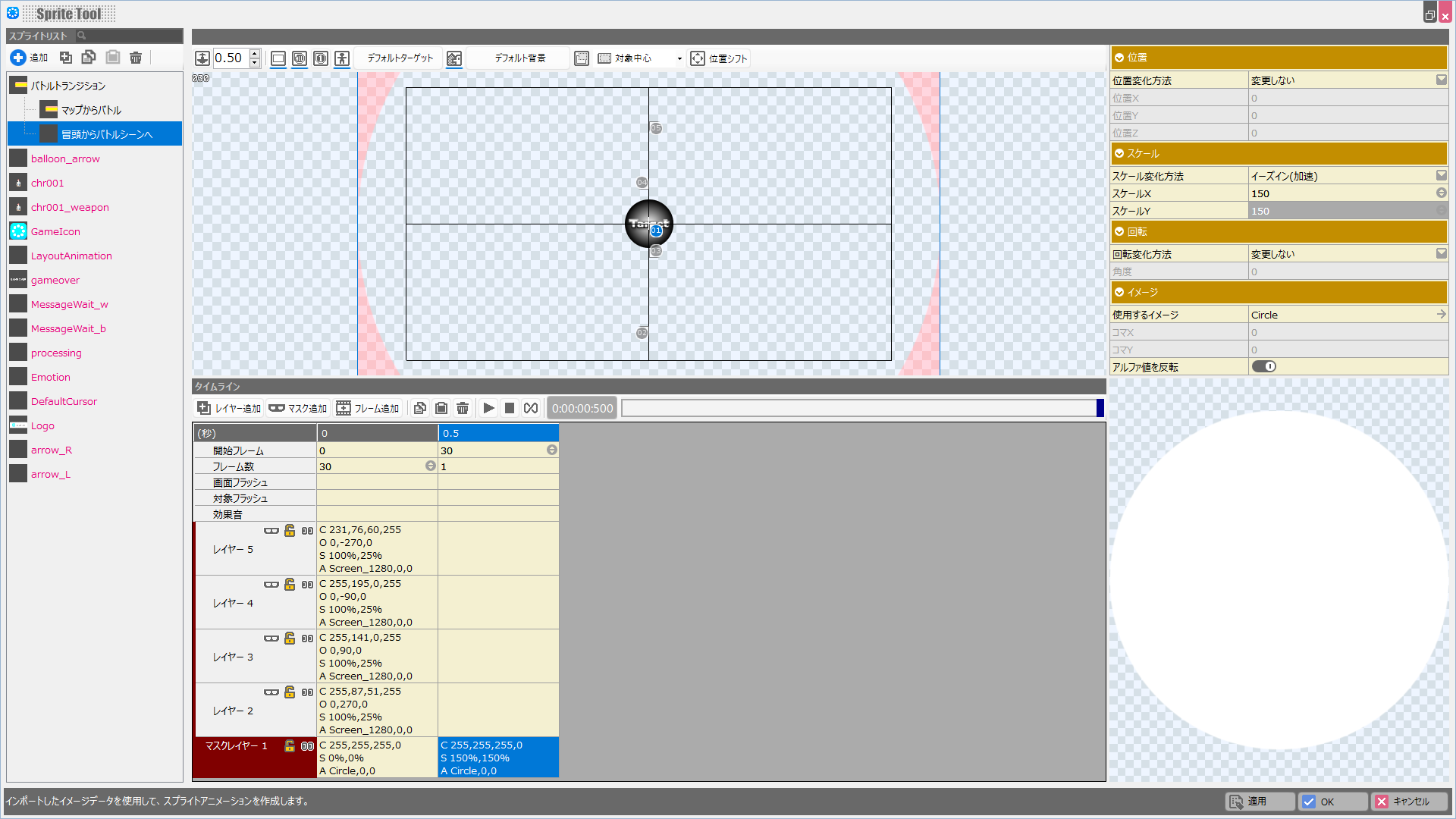 | イメージ | 使用するイメージ:Circle、アルファ値を反転:オン |
